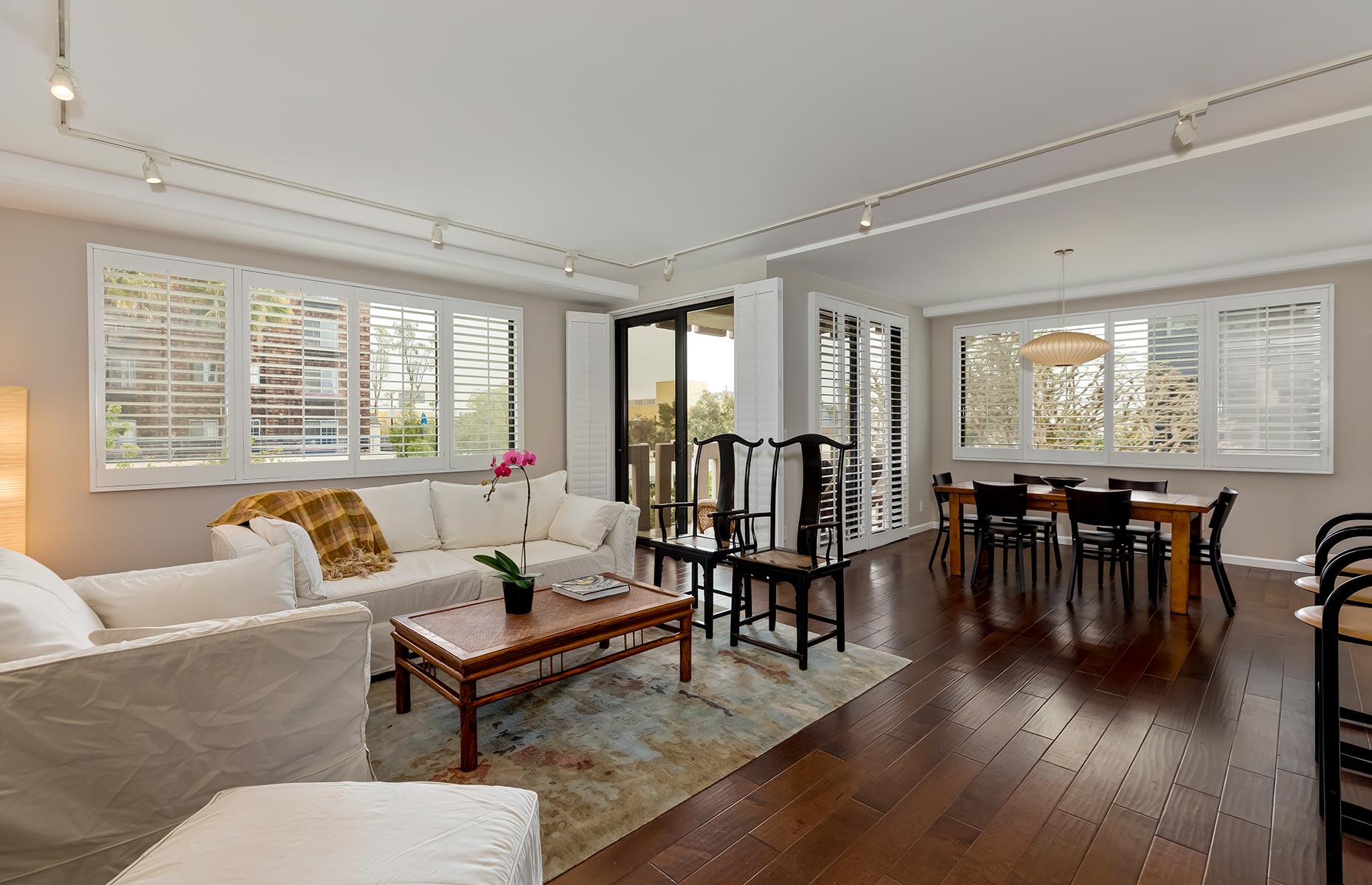 A beautiful corner unit tastefully updated in one of the most desirable controlled access buildings near the Fairmont Miramar Hotel and Spa, Shopping, dining, the Farmers Market and the beach! This 2-bed, 2-bath light filled condo features a gracious layout with formal entry, large living room open to dining and a private balcony that allows for optimal living and entertaining. The spacious master suite with a walk-in custom closet has a stunning newly redone bathroom with designer finishes. The roomy second bedroom or home office has large windows and an updated closet. The second bathroom has also been elegantly remodeled. A sophisticated kitchen with all new stainless-steel appliances, ample storage space and a laundry closet with stackable washer/dryer completes this turnkey home. Two side by side parking spaces are conveniently located near your extra storage space and elevator. Building amenities include a recently redone stylish rec room with kitchen, pool, spa, fitness room and saunas.
